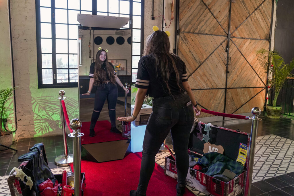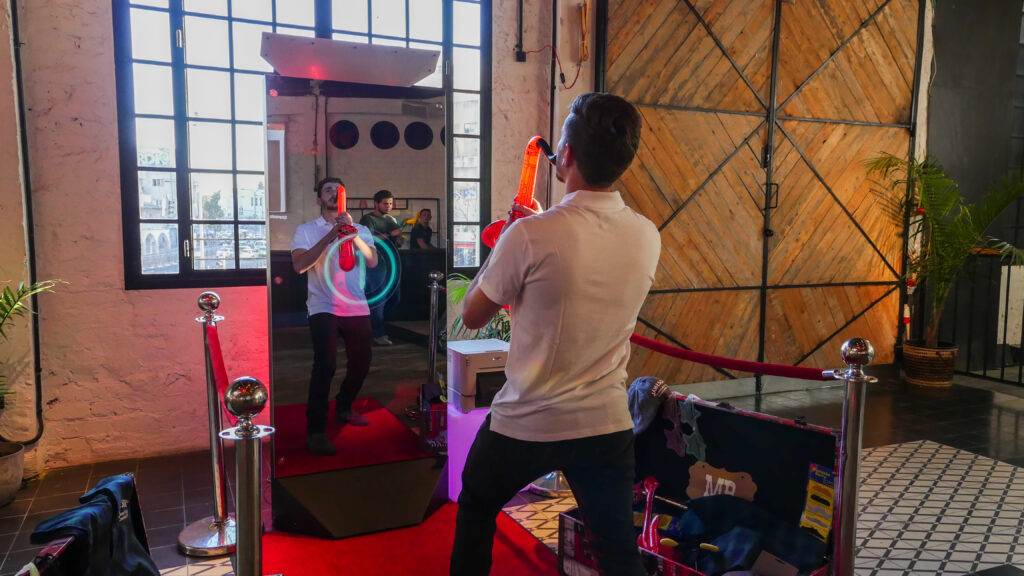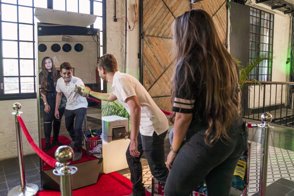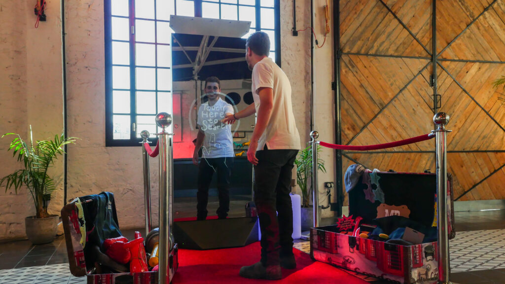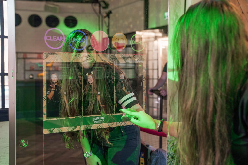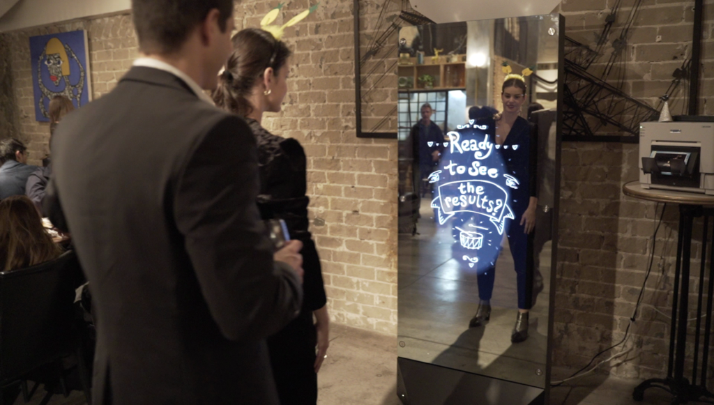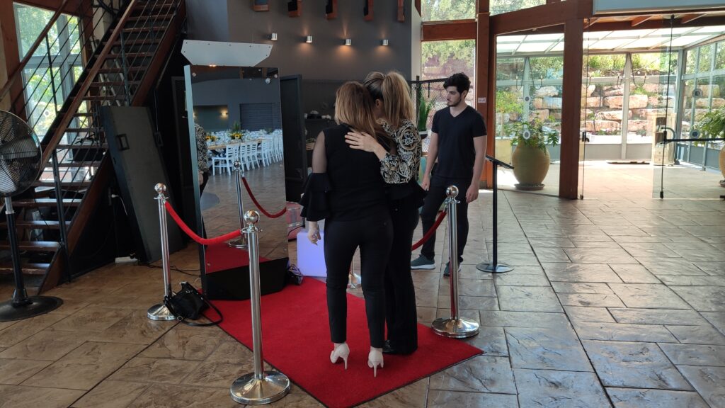 Welcome, if you’ve made it this far you must be intrigued. We’re happy to have you, let’s jump right in shall we? The photo booth is a full length touch screen glass mirror, (72.6” x 29.5” x 23”) with an incredible “WOW” factor because of its breathtaking all glass design. Included with the booth are 2 speakers for all of your music needs, 2 strobe flashes to help in those dimly lit areas, and a beautiful DSLR Canon wide-lens camera. The Mirror X Booth truly stands out in the crowd. Completely touch screen with multi user technology, so you and friends can all type something at once! This modern Mirror booth combines Elegance and entertainment with its sleek aluminum build, 360 degree heavy-duty wheels, and revolutionary software. We promise you, there is nothing else like it out there. Trust us on this one. (-: